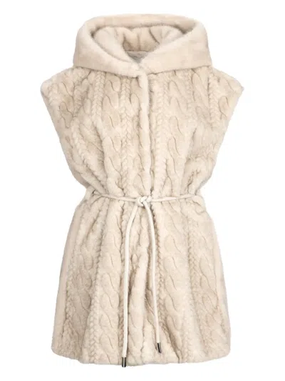 Faux Fur Beige Jacket With Three-quarter Sleeves In Neutral