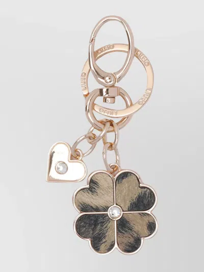 Floral Keychain With Crystal Accents And Charms In Gold