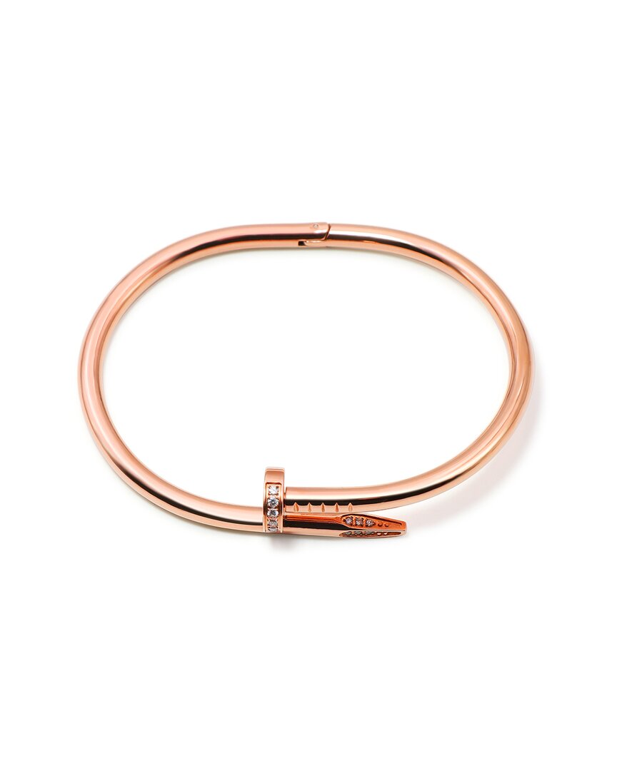 18k Rose Gold Plated Cz Embellished Nail Head Bangle Bracelet