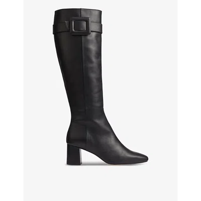 Womens Bla-black Carter Block-heel Leather Knee-high Boots