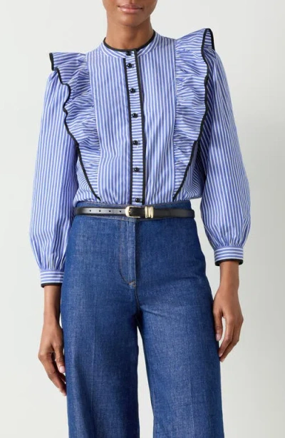 Lucan Ruffle Stripe Shirt In Pri-blue/white