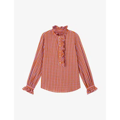 Womens Mul-orange Camille Gingham Seersucker-cotton Shirt