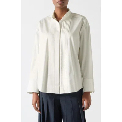 Colette Pleated Placket Cotton Button-up Shirt In White