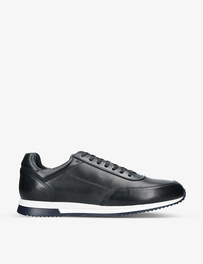 Mens Navy Bannister Tonal-stitching Leather Low-top Trainers