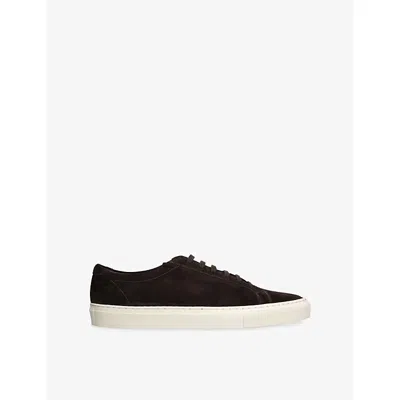 Mens Dark Brown Bannister Panelled Suede Low-top Trainers