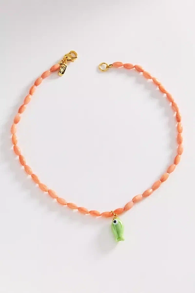 Beaded Fish Necklace In Orange