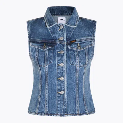 Stone Vintage Denim Celine Vest Jacket In Blue