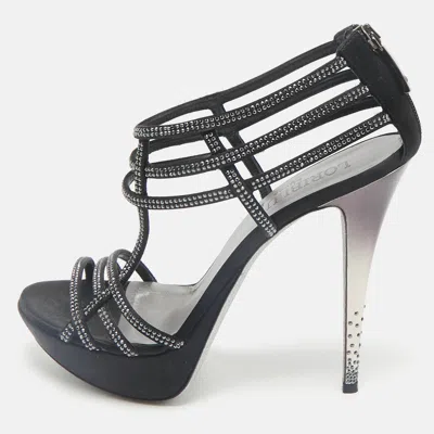 Pre-owned Black Suede Crystal Embellished Platform Sandals Size 40