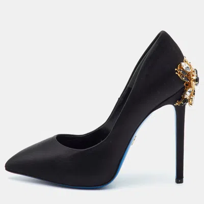 Pre-owned Fodera Size 35.5 Black Satin Butterfly Crystal Embellished Pointed Toe Pumps