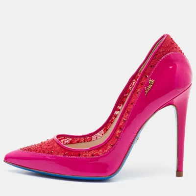 Pre-owned Size 37 Bright Pink Lace And Patent Leather Pointed Toe Pumps