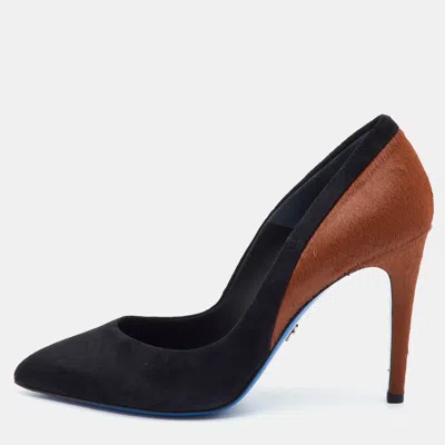 Pre-owned Size 38 Black/brown Calf Hair And Suede Pointed Toe Pumps