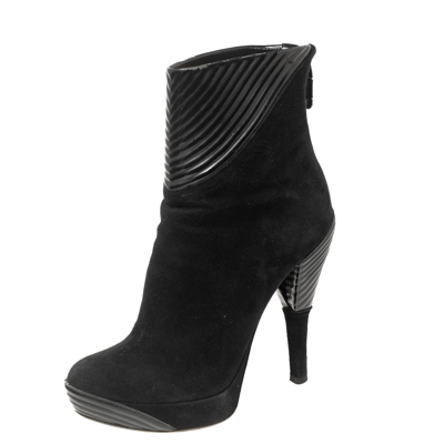 Pre-owned Black Suede And Leather Ankle Boots Size 37