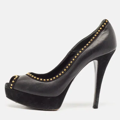 Pre-owned Black Leather Peep Toe Platform Pumps Size 39