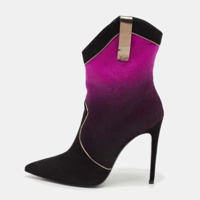 Pre-owned Purple/black Calf Hair And Suede Ankle Length Boots Size 41