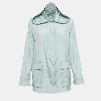 Pre-owned Navy Blue Silk Concealed Hood Travelers Jacket L