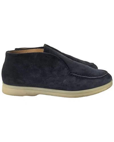 Pre-owned Navy Blue Suede Tassel Dot Sole Walk Slip On Loafers Size 39.5