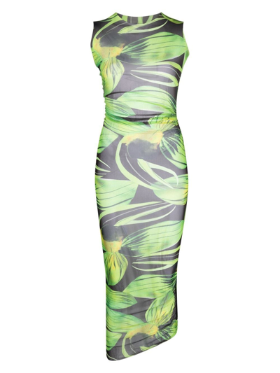 High Tide Printed Stretch-jersey Maxi Dress In Black With Red And Silver Flowers