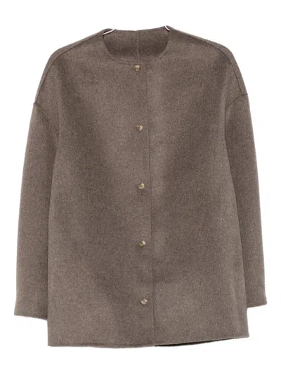 Double-breasted Wool Jacket In Taupe Color In Neutral