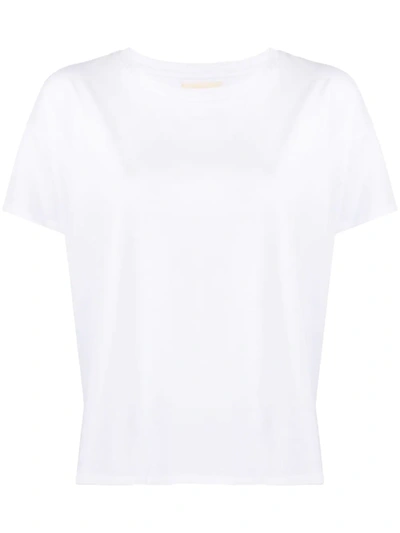 Madea White Crewneck Top With Draped Detail And Asymmetric Design In Silk Woman In Neutral