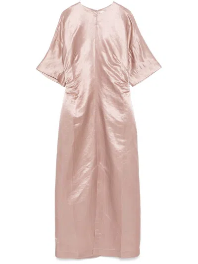 Long Antique Pink Dress In Linen And Silk In Brown