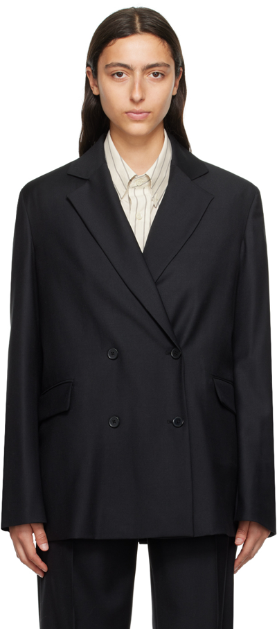 Icha Double-breasted Cotton And Linen-blend Twill Blazer In Black