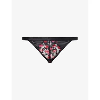 Womens Underwear Printed Entice Lace Thong In Black