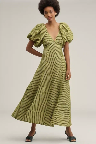 Tess Linen Silk Puff-sleeve Dress In Green