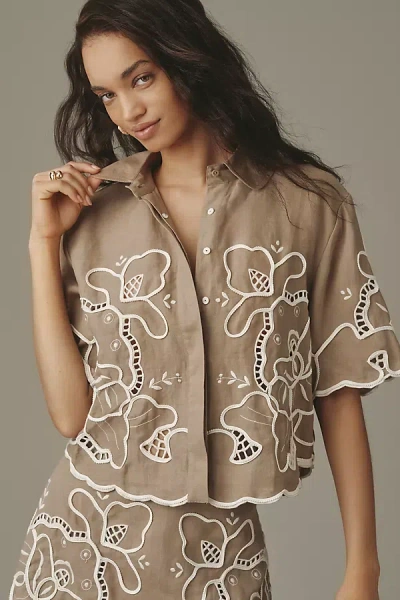 Milicent Eyelet Buttondown Linen Shirt In Brown