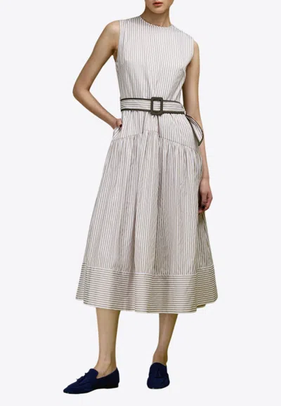 Noah Belted Stripe Midi Dress In Sand