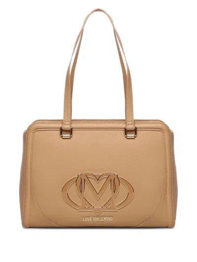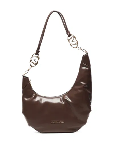 Black Handbag With Heart Emblem In Brown