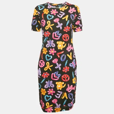 Pre-owned Black Printed Cotton Knit Short Dress S