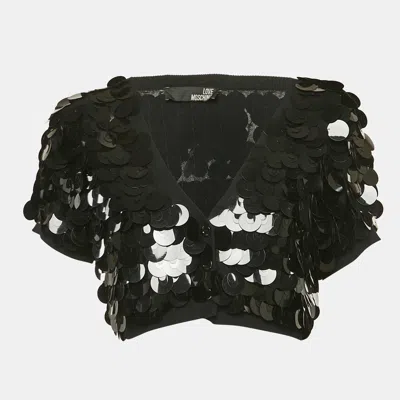 Pre-owned Black Sequined Knit Short Sleeve Cardigan L