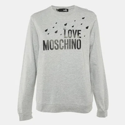 Pre-owned Grey Logo Print Cotton Crew Neck Sweatshirt M