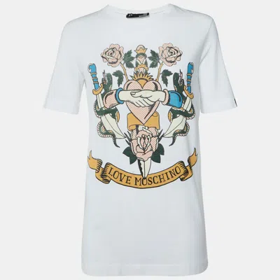 Pre-owned White Heart Print Cotton Sweatshirt S