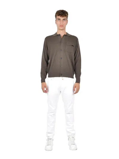 White Sweater With Polo Shirt Style Collar And Long Sleeves In Wool Man In Neutral