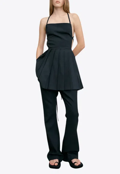 Mini Dress With Pleated Skirt And Strappy Design In Black