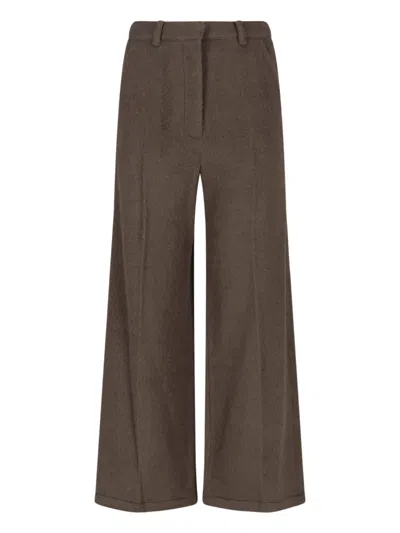 Wide Leg Wool Trouser With Belt Loops In Gray