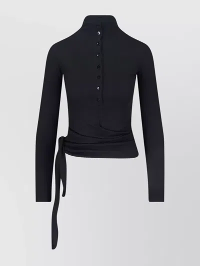 Long Sleeve Mock Neck Top With Tie In Black