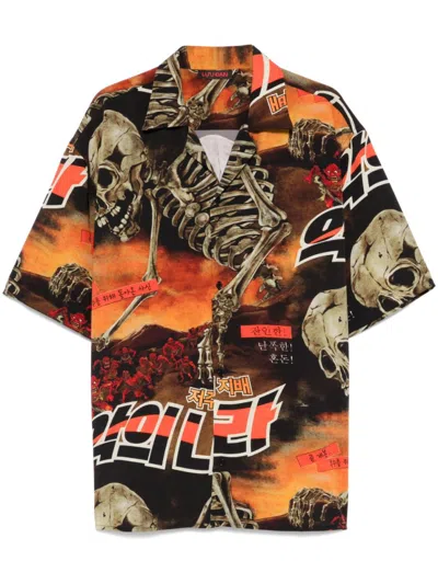 White Short Sleeve Shirt In Orange