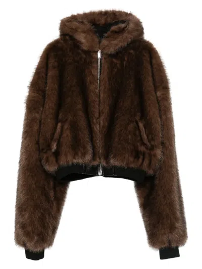 连帽人造皮草夹克