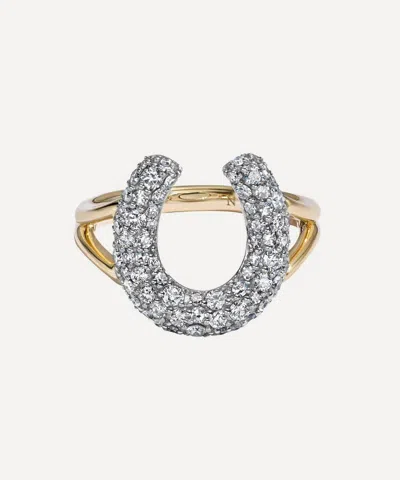 14ct Gold Antique Finish Diamond Pave Horseshoe Ring In Metallic