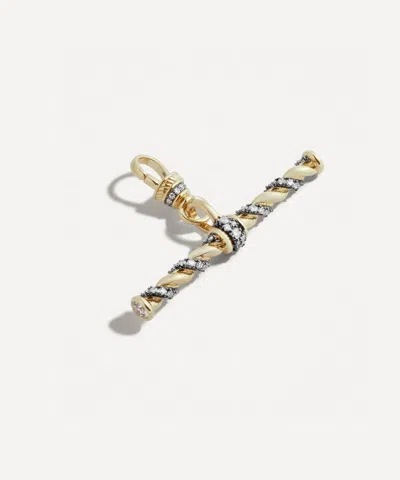14ct Gold Antique Finish Twisted Rope T-bar Pendant In Gray