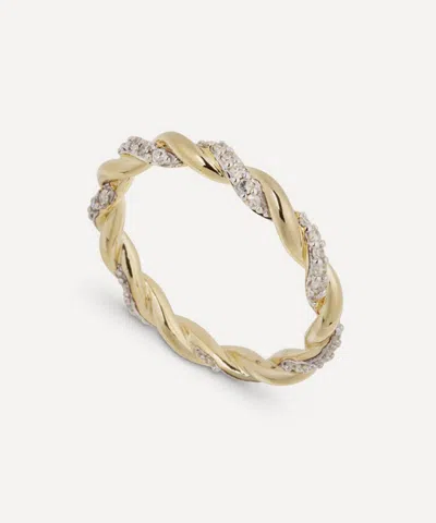 14ct Gold Antique Finish Diamond Pave Horseshoe Ring In Metallic