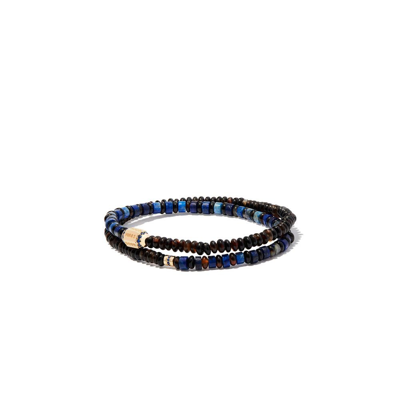 Men's 14k Yellow Gold, Pueblo Bead, & Sapphire Stretch Bracelet In Neutral