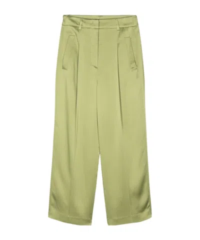 Crepe Pleated Straight Trousers In Nude