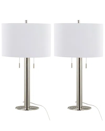 Set Of 2 Geome 27in Contemporary Table Lamps With Grandview Gallery Linen Shade In White