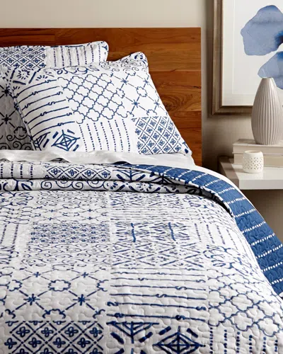 Lush Décor Lillian Block Print Reversible Quilt Set In Blue