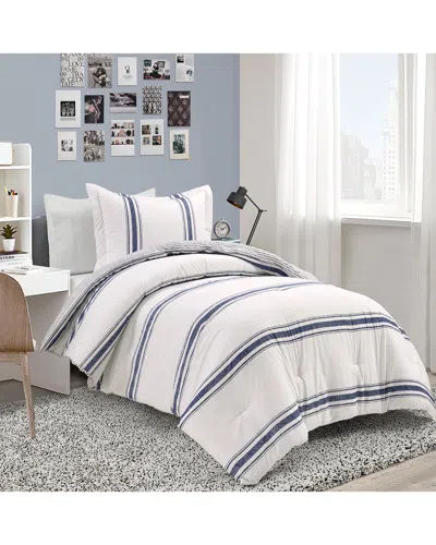 Fashion Farmhouse Stripe Reversible Cotton Comforter In Navy