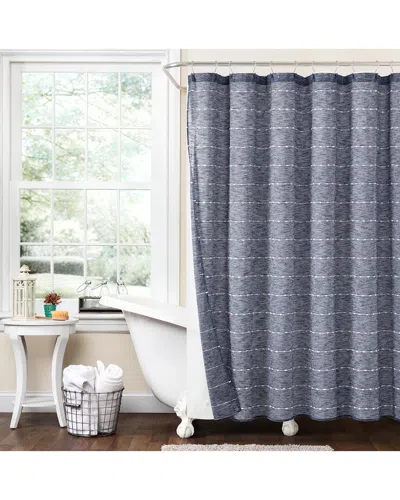 Fashion Farmhouse Textured Sheer With Peva Lining Shower Curtain In Navy