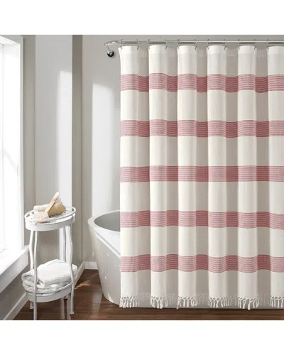 Fashion Tucker Stripe Yarn Dyed Cotton Knotted Tassel Shower Curtain In Navy